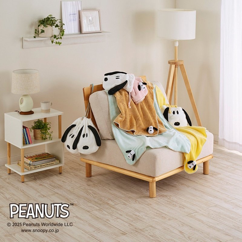 nishikawa x PEANUTS/SNOOPY 以可愛頭像作為重點,設計出收納袋與毛毯的立體造型,讓簡單的毯子也能如此獨特又有趣 輕巧好收納設計,只要收在專屬束口袋中,無論收藏或外出時都能便利與好攜