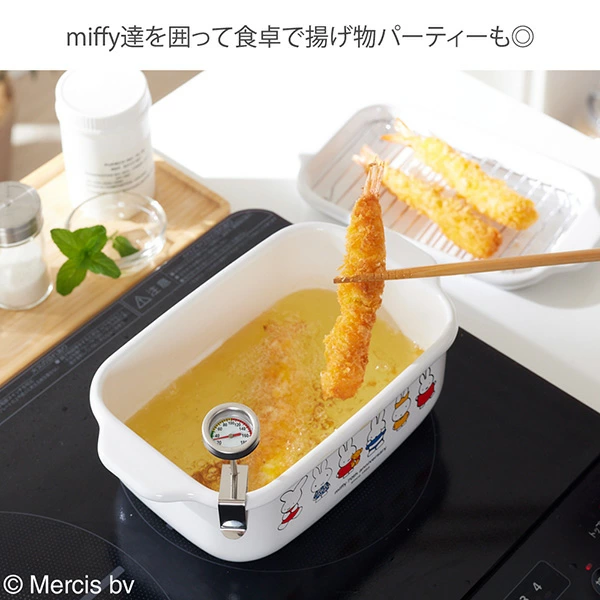 附有防水溫度計、托盤和烤架,鍋身長方形設計讓長條食材也能輕鬆烹調