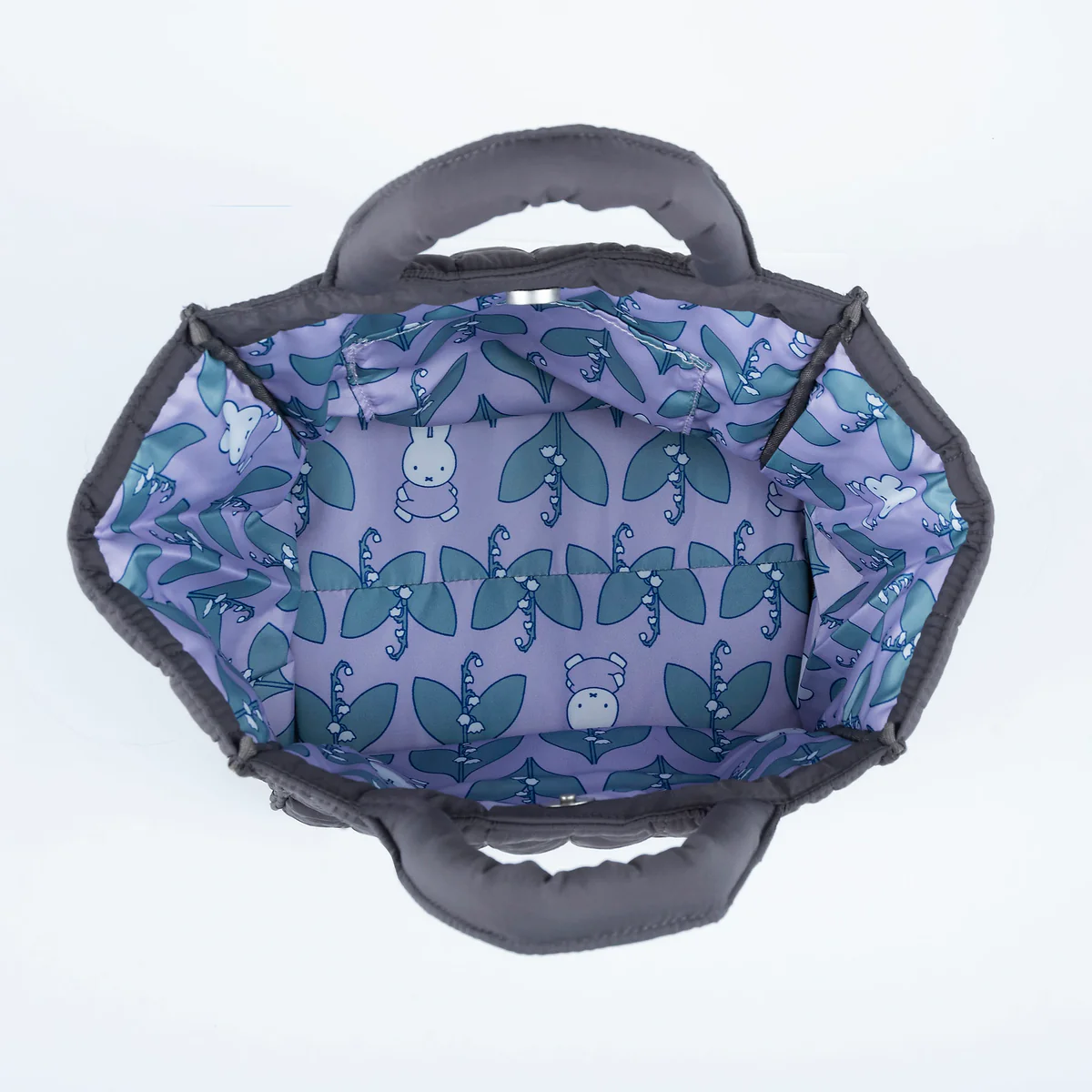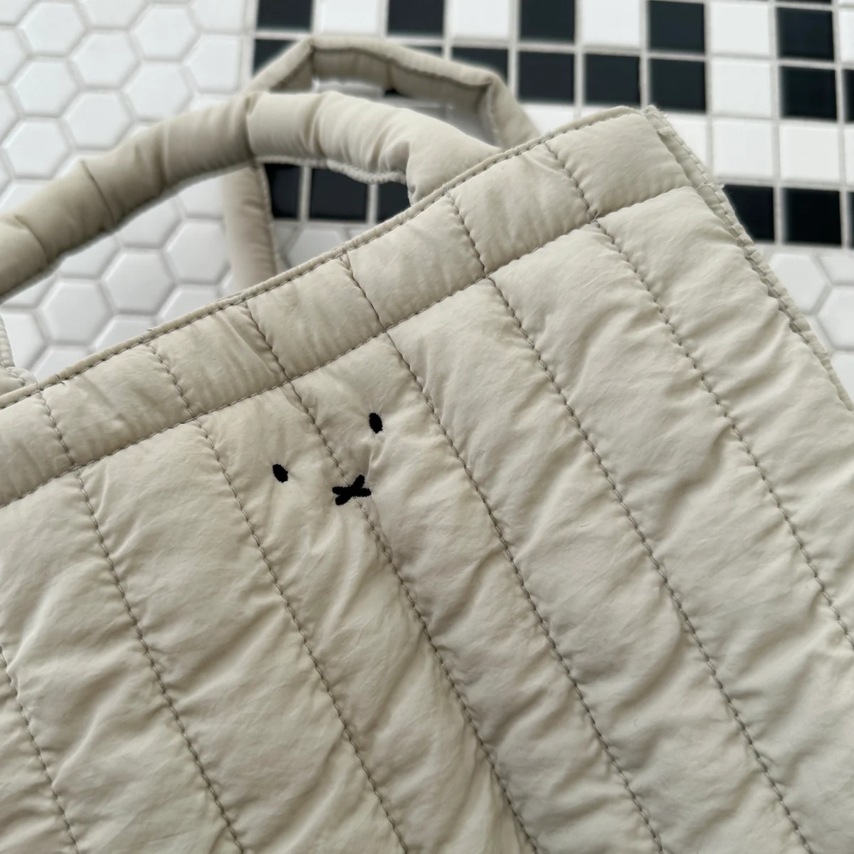 HEMING’S 絎縫方格手提袋系列有著獨特造型設計,並繡上經典米飛表情與柔軟舒適的觸感,內藏美麗花朵圖案讓妳感受滿滿的細節感