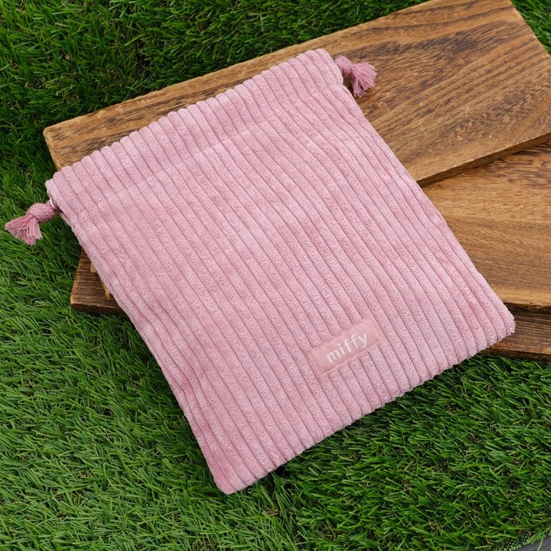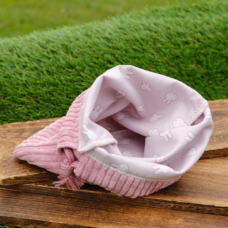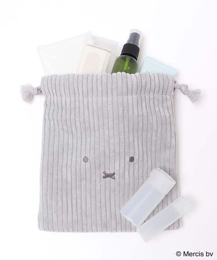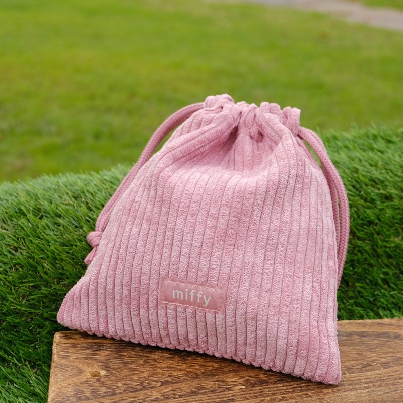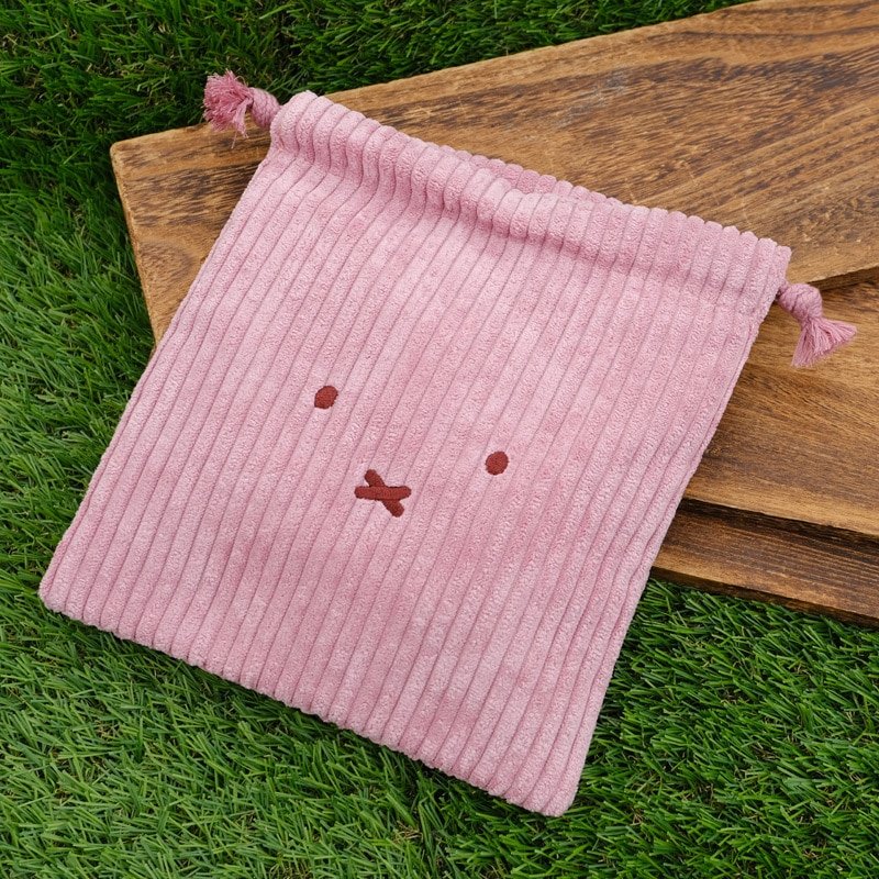 Marimo Craft 設計有米飛兔大臉的束口袋 因為用途廣泛,非常適合用來整理容易散亂的隨身小物,或是代替化妝包使用 能為穿搭增添季節感的燈芯絨布料,以及印有各種表情、充滿樂趣的米飛兔滿版內裡也是設計亮點