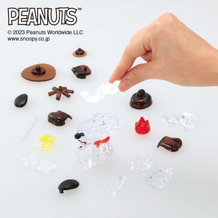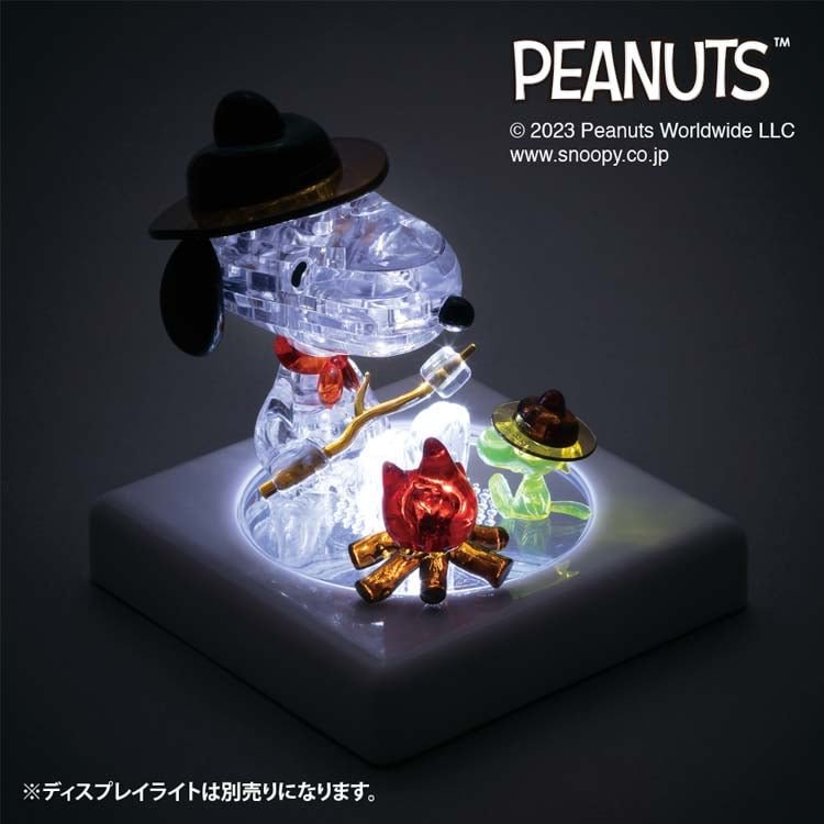 這款立體拼圖由精緻的透明片組成,讓史努比與胡士托穿上探險裝束、圍繞營火,重現生動的露營時光!