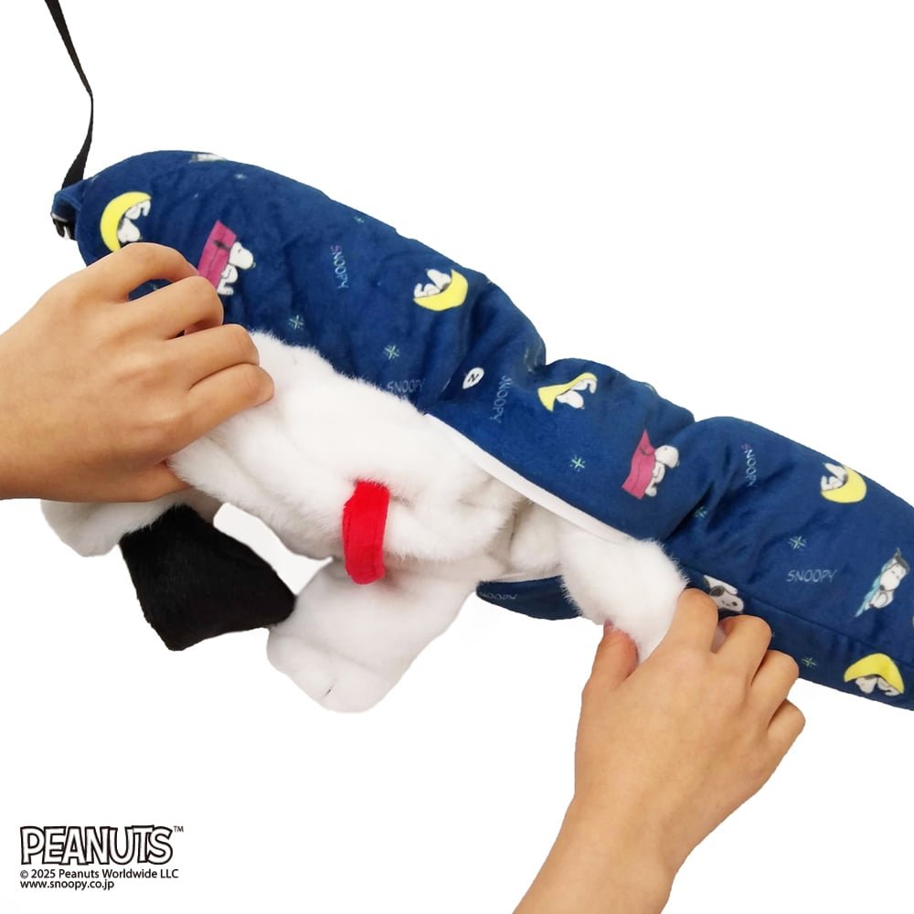 史努比可愛的雙手部分可以互相扣住,方便您安裝在行李箱拉桿或包包背帶上,輕鬆帶著它旅行!