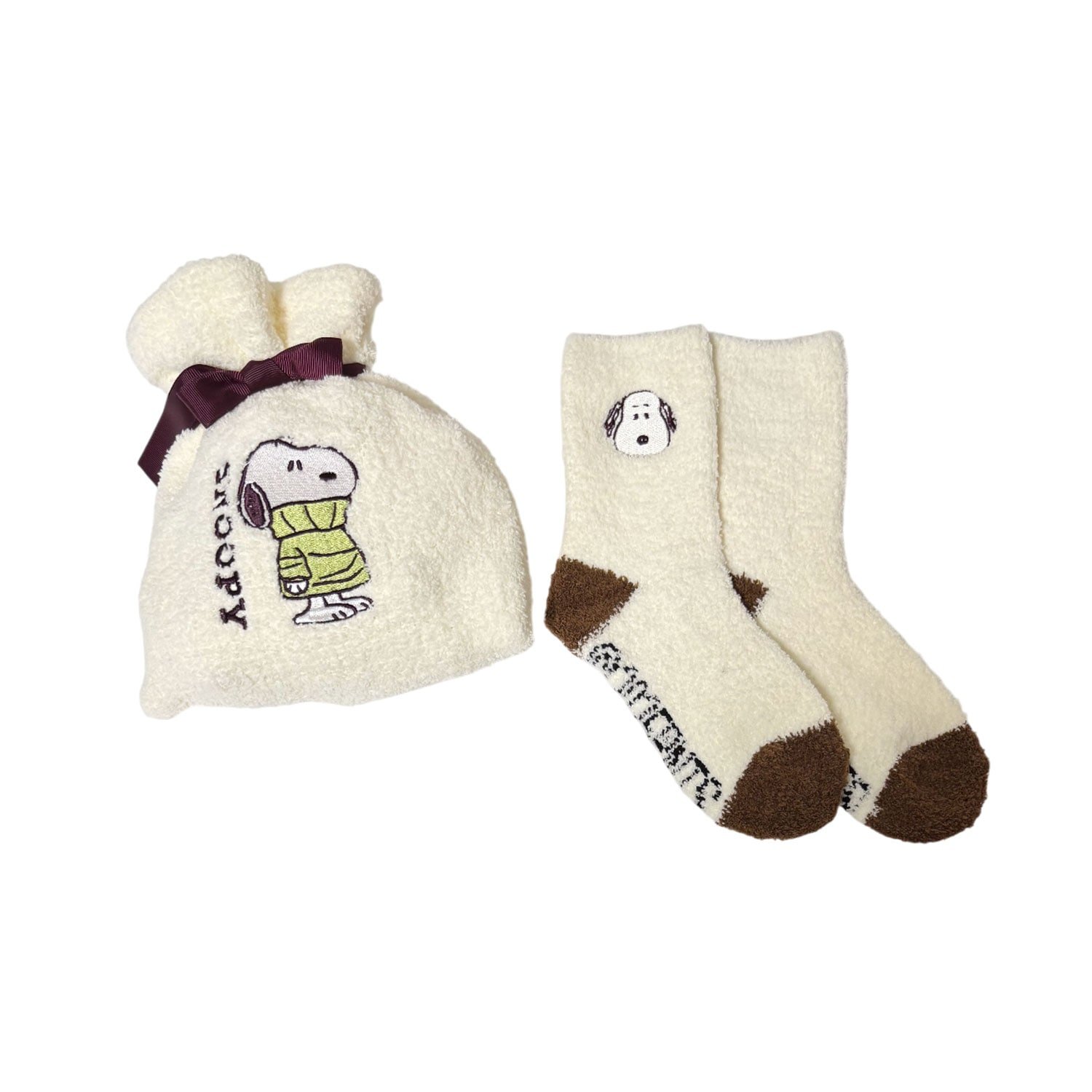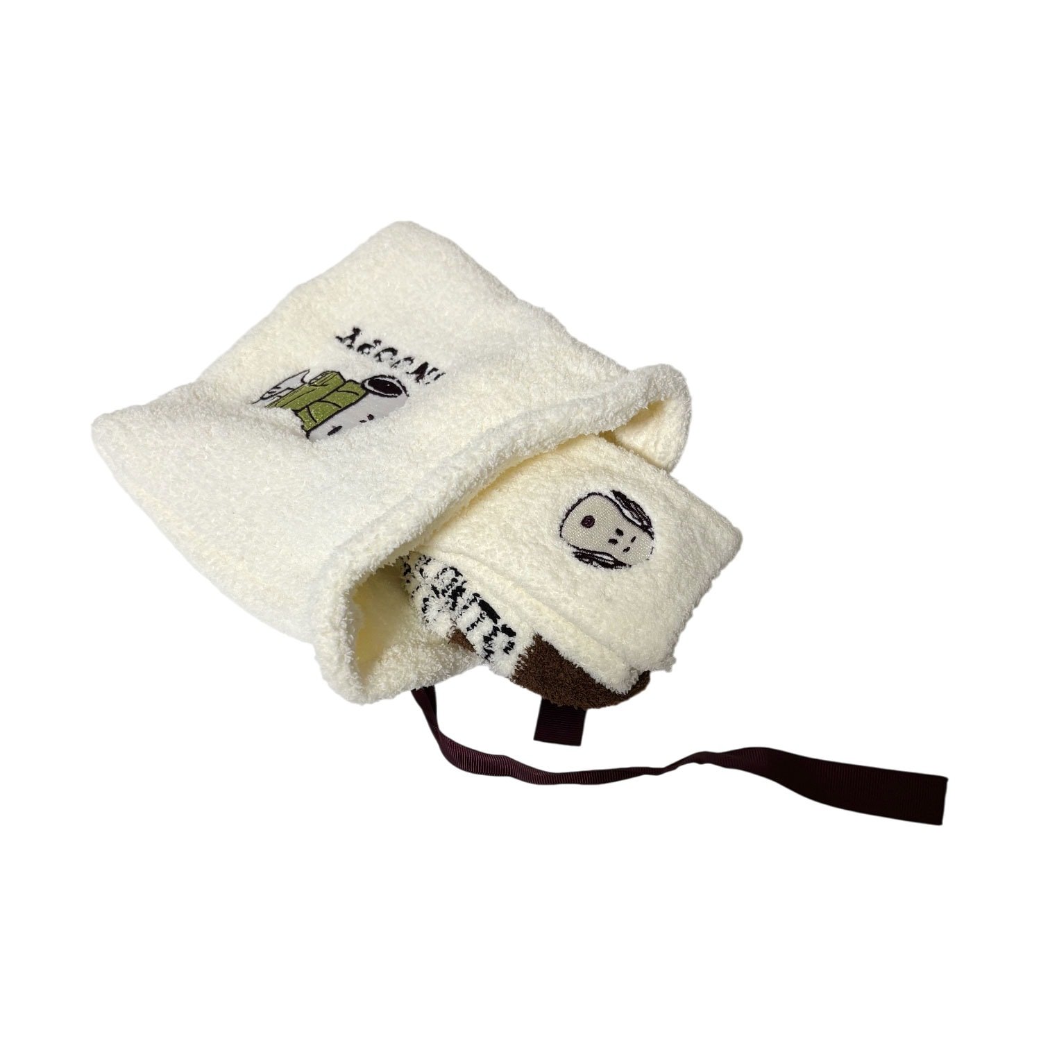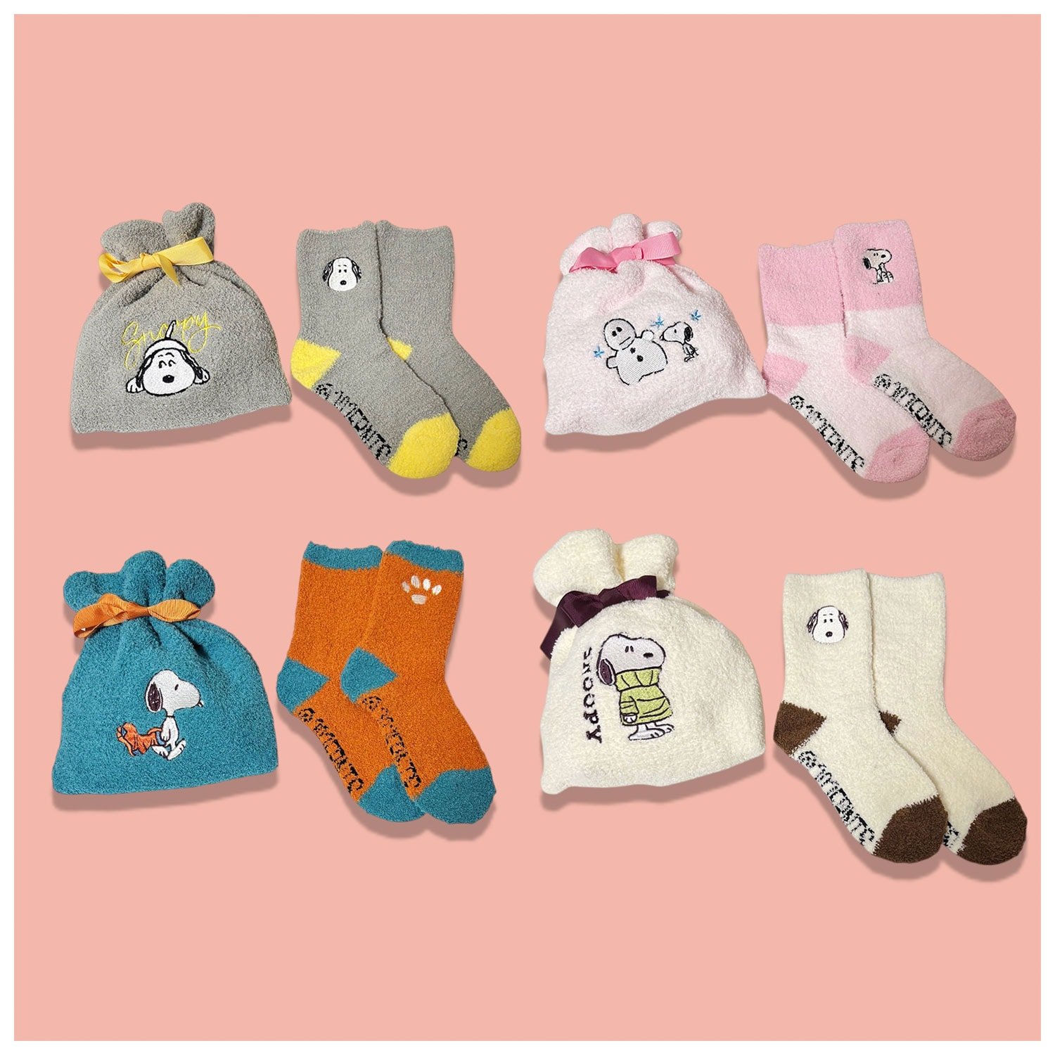 PEANUTS SNOOPY 保暖又舒適的組合,專屬束口袋既可收納襪子,也可作為一般收納袋使用