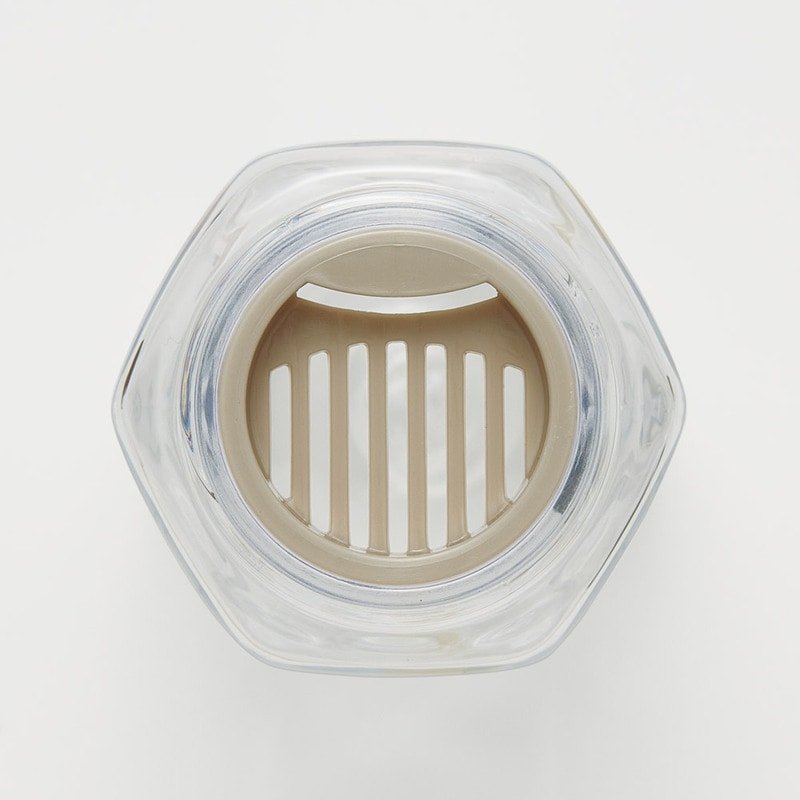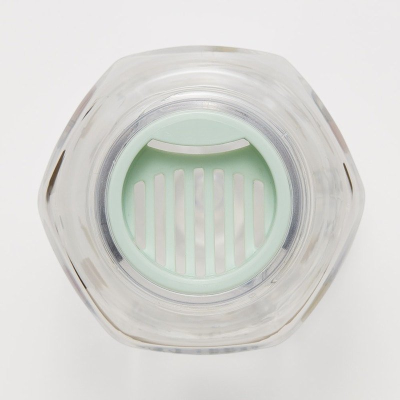 Skater x Miffy 採用瓶體以六角形設計,好抓好握不易滾動 在瓶口附有濾網的出水設計,兼具飲用與減少喝到冰塊、茶渣等問題