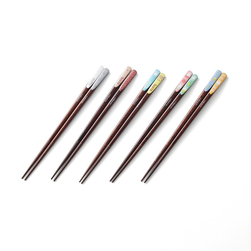 Skater 採用筷子頂端大面積斜切的設計,搭配上可愛米飛做點綴,並在十隻筷子皆有十種不同圖案,讓妳自由混搭出不同的風格