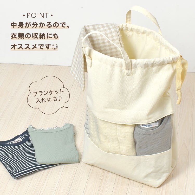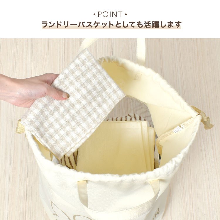 T’S Factory 這是一款非常適合用來收納玩具或衣物的大型束口收納籃 因為袋子能穩固地直立,所以不僅適合收納玩具、絨毛娃娃、衣物和毯子,也能當作洗衣籃使用 袋體附有把手設計,拿取方便,移動時也很輕鬆 背面採用透明設計,方便直接確認裡面的內容物 可愛的米飛兔插圖設計,無論是放在客廳還是兒童房都非常適合